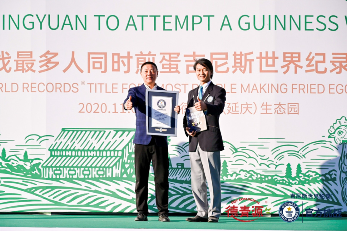 吉尼斯官方認(rèn)證官為德青源總裁鄭大亮頒發(fā)認(rèn)證證書